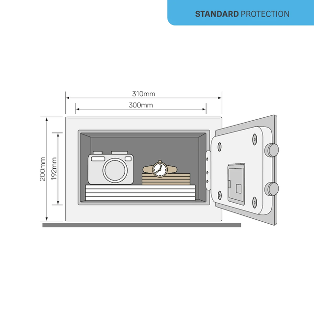 Caja fuerte con teclado fácil de utilizar y programable para códigos PIN de 3 a 8 dígitos.