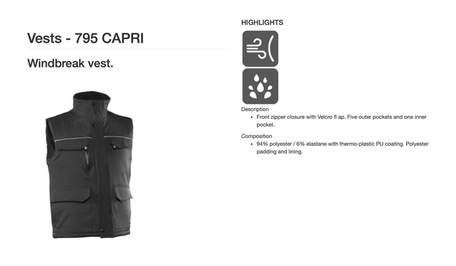 Chaleco cortaviento JUBA mod. 795 CAPRI Negro