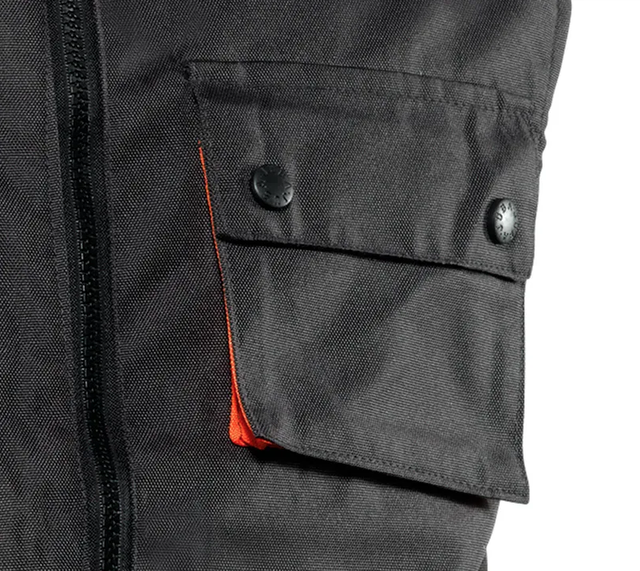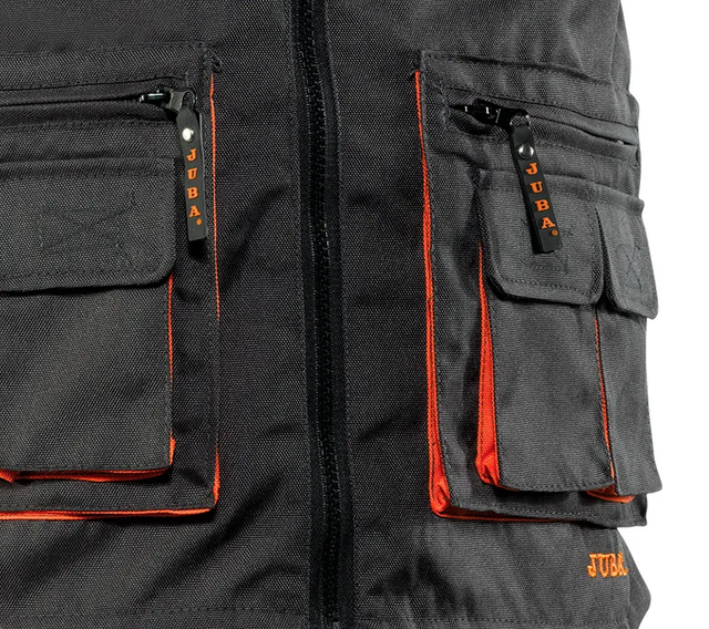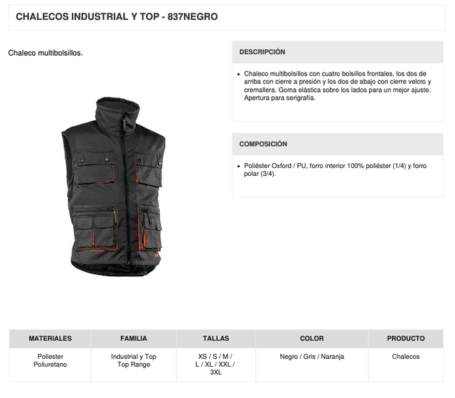 DChaleco multibolsillos con cuatro bolsillos frontales, los dos de arriba con cierre a presión y los dos de abajo con cierre velcro y cremallera. Goma elástica sobre los lados para un mejor ajuste. Apertura para serigrafía.
