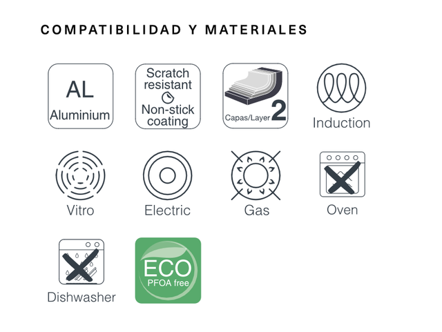Libre de materiales pesados y tóxicos, ecológico y libre de PFOA.